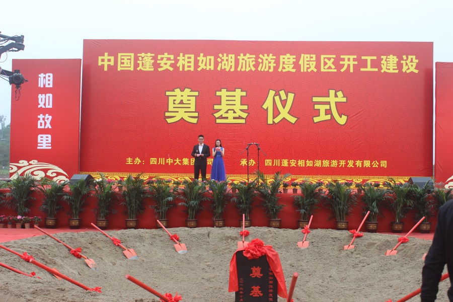 2016年10月18日上午,中国蓬安相如湖旅游度假区开工建设奠基仪式在蓬安县锦屏镇嘉陵江畔隆重举行,四川省有关部门领导、南充市有关部门领导、蓬安县四大班子领导及县有关部门负责人、旅游业界代表、社会各界人士和当地群众代表1000余人参加了活动,共同见证这一重要时刻。奠基仪式同时宣布中国蓬安相如湖旅游度假区项目正式开工建设,这必将载入蓬安旅游发展史册。