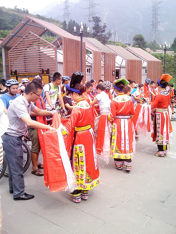 8月25日下午15:10分,美丽汶川·骑乐游,2013环汶川旅游景区自行车邀请赛映秀景区骑游活动,在我公司映秀景区游客中心激情启动。