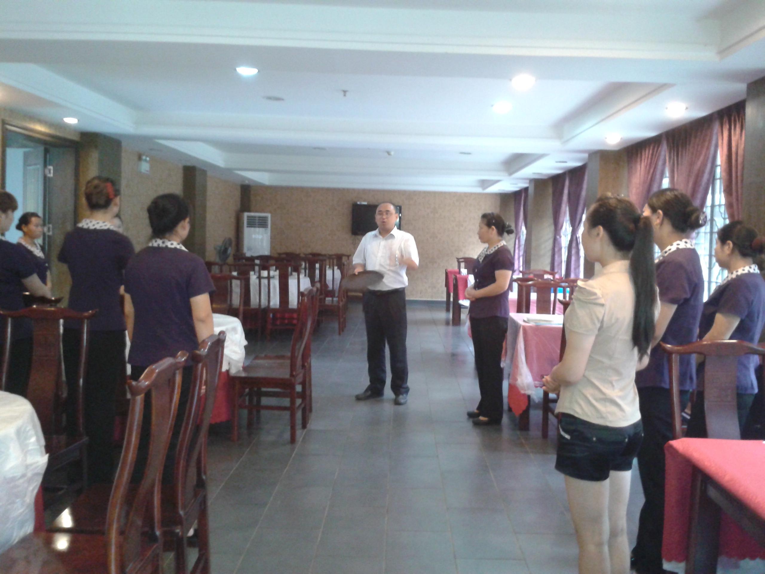 人力资源部根据昭化分公司酒店现状及从业人员服务技能及职业素质要求,做出了相关的培训计划,于7月21日请到昭化区职业高级中学旅游专业讲师熊大钊先生在汉寿客栈对酒店的中餐摆台、客房服务等相关技能进行了培训。