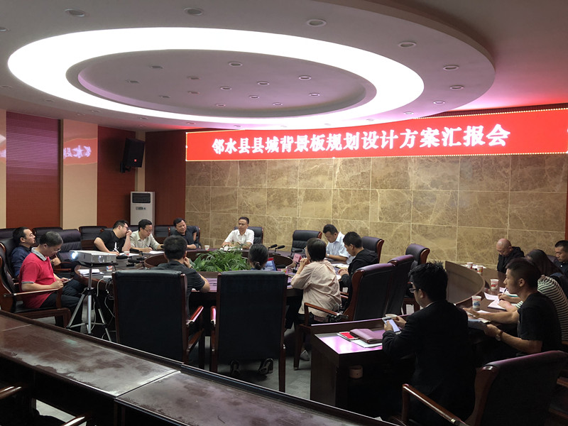 2018年9月25日,规划设计院院长冯世斌率队赴广安市邻水县汇报《邻水县县城背景板规划设计》,业务总监任俊宇、技术总监汪旭萍、技术所长张骜陪同前往。