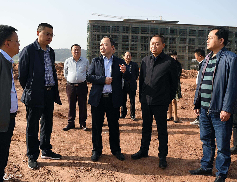 2018年4月9日,蓬安县委书记蒲国深入相如湖国际大酒店实地调研,集团公司董事长冯世斌陪同。