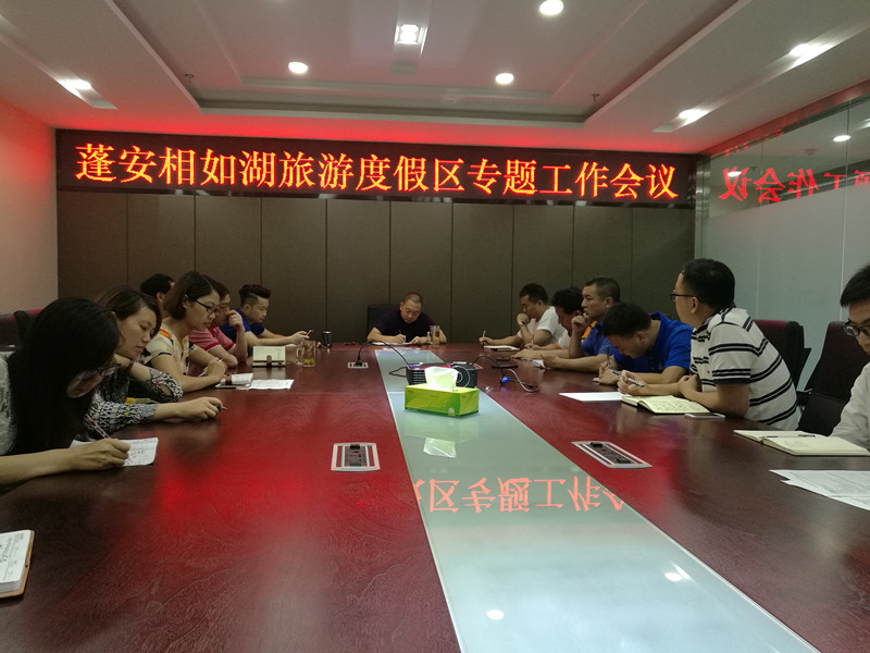 为系统总结蓬安相如湖旅游度假区项目建设情况,厘清工作思路,为下一步工作指明方向。2017年6月19日,集团公司组织召开蓬安相如湖旅游度假区专题工作会议。集团公司董事长冯世斌,副总经理白宗颜、康双全、张林及全体员工出席。